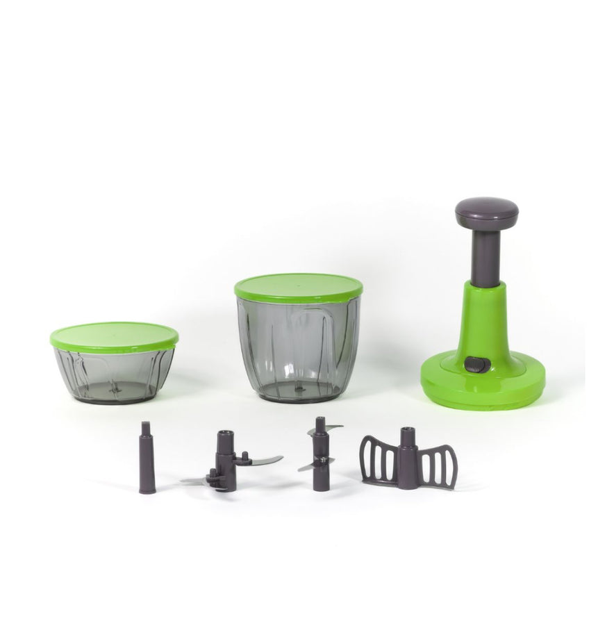 Presentiamo Chef Pedro tritatutto professionale con 5 lame super affilate. Perfetto per affettare, tagliare, tritare e sminuzzare. Utilizza il mixer chef per creare mousse al caffè o granite con frutta fresca. Senza corrente né batterie, è facile da usare a mano.